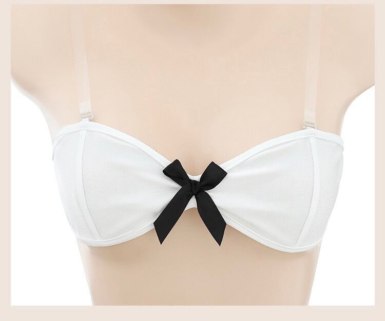 1.カチューシャ 2.しっぽ付きトップス 3.ブラ 4.股割れショーツ 5..透明ストラップ 6.襟回り鈴